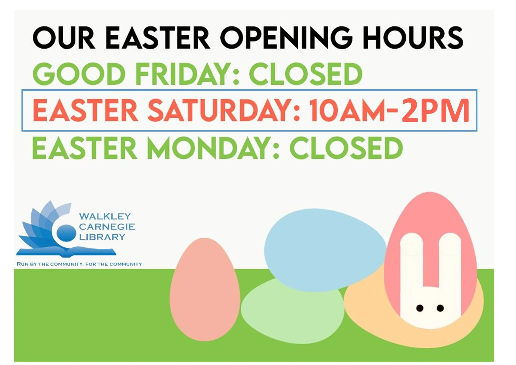 Please see the poster below for our Easter opening times.